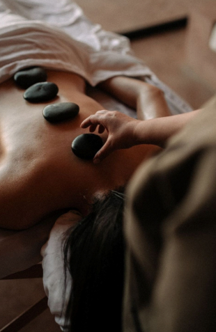 manuelles enveloppantes. Les pierres, préalablement chauffées, sont disposées sur les points clés du corps et utilisées lors du massage pour diffuser une chaleur apaisante qui décontracte les muscles en profondeur, stimule la circulation et favorise le lâcher-prise. Ce soin procure une détente intense, soulage les tensions, réduit le stress et apporte une sensation de confort et de